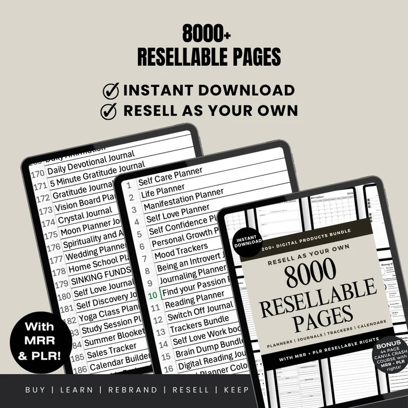 8000 Resellable Done For you digital pages, PRL Bundle, Passive Income Starter, Canva Template Bundle, Editable Printable, Ebook